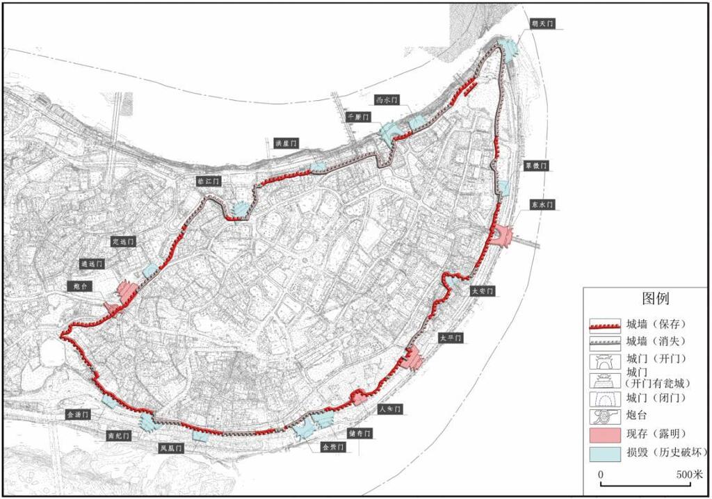 图二 重庆古城垣现状分布图