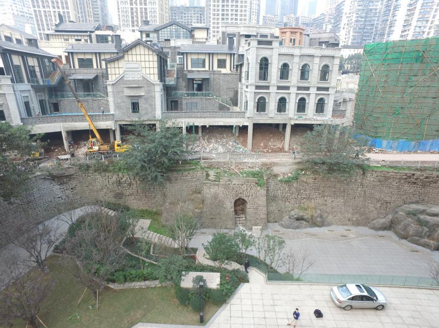 调査结果表明,重庆古城垣遗址的南宋城垣主要发现于朝天门至翠微门、东水门至太安门、太安门至太平门、太平门至人和门、南纪门至金汤门、金汤门至通远门、通远门至定远门、定远门至临江门、西水门至朝天门之间,呈不连续分布,除西水门至朝天门段城垣被明清城垣包裹外,余者多叠压于明清城垣下部。结合太平门、西水门至朝天门段城墙遗址发掘情况看,南宋城垣在规划布局上,充分利用了重庆山水合一的优势,“踞山围城、依江为壕”,塑造了山水城三位一体的空间格局,尽管范围小于明清城垣,但近世重庆古城垣的基本格局业已形成。