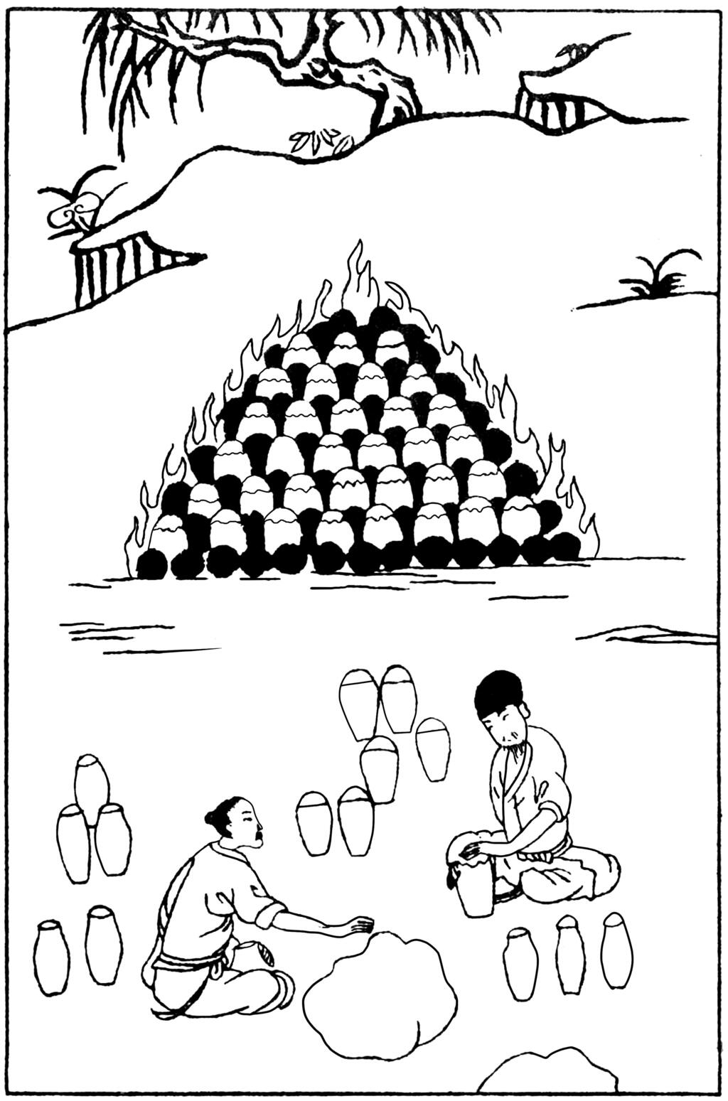 图一《天工开物》中的“升炼倭铅”图