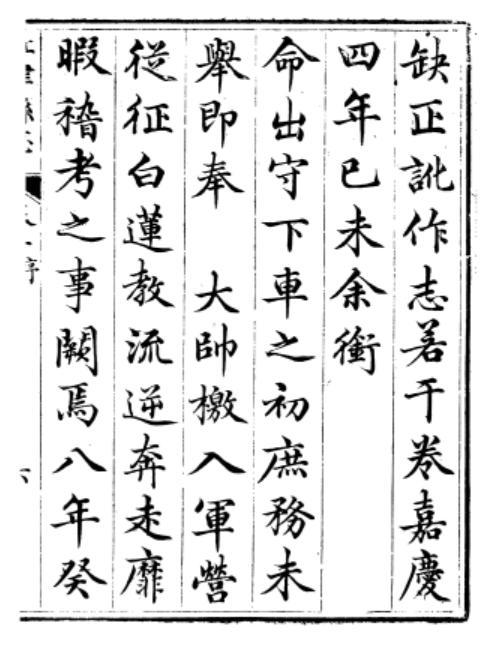 六、嘉庆七年三月石韫玉为勒保定分兵策,兼用坚壁清野法。作《守寨方略》十二则,檄行川东北。十一月在川北坠马受伤。